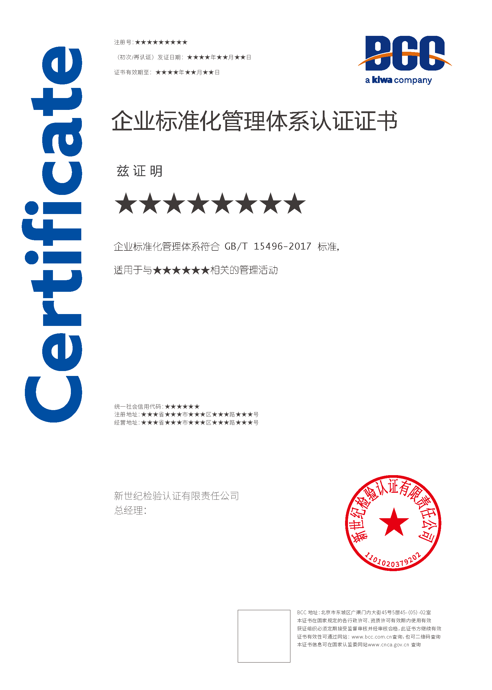 GB/T 15496-2017標(biāo)準(zhǔn)涵蓋了企業(yè)標(biāo)準(zhǔn)化管理體系的要求、產(chǎn)品實(shí)現(xiàn)、基礎(chǔ)保障等方面的內(nèi)容。該標(biāo)準(zhǔn)旨在規(guī)范企業(yè)的標(biāo)準(zhǔn)化管理,提升企業(yè)的綜合競爭力。通過認(rèn)證是對企業(yè)標(biāo)準(zhǔn)化工作成果的一種全面認(rèn)可,證明其標(biāo)準(zhǔn)化管理體系的有效性和先進(jìn)性。