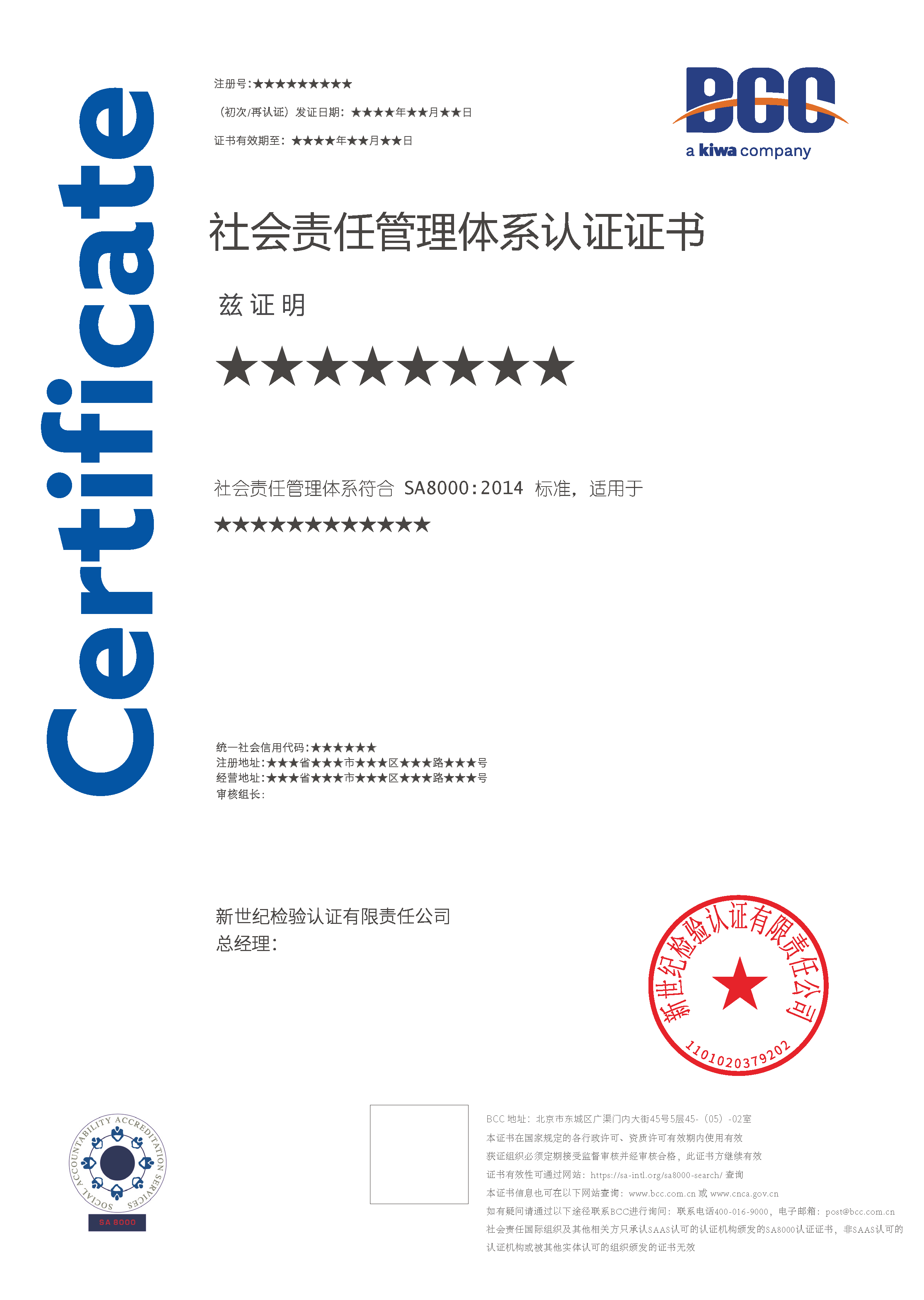 除此以外,申請(qǐng)社會(huì)責(zé)任管理體系認(rèn)證的企業(yè)還需提交一些輔助資料,如管理手冊(cè)和程序文件(至少應(yīng)提供認(rèn)證標(biāo)準(zhǔn)中明確要求建立的程序文件)等。